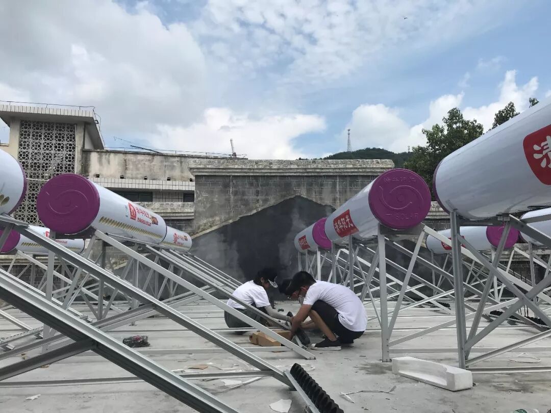 经过近一天的艰苦安装,12台“清华阳光”紫荆花太阳能热水器以美观整齐的姿态竖立在学校上方,它们将肩负起为全校师生提供清洁热水的重任,同时也唤起孩子们的绿色环保意识,在他们心中播下一颗绿色的种子并且生根发芽,使他们能够怀揣绿色梦想,在未来成长的道路上,不断践行绿色、传播绿色,以实际行动影响身边每一个人。