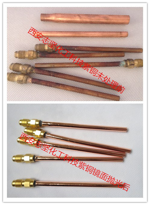 第五步:抛光,zj-503 1:2兑水,(兑去离子水)黄铜加温40-45度,紫铜加温45-50度。浸泡1-3分钟,