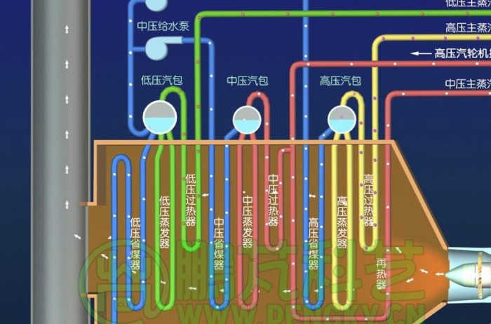 燃油、燃气、燃煤经过燃烧产生高温烟气释放热量,高温烟气先进入炉膛,再进入前烟箱的余热回收装置,接着进入烟火管,*后进入后烟箱烟道内的余热回收装置,高温烟气变成低温烟气经烟囱排入大气。由于余热锅炉大大地提高了燃料燃烧释放的热量的利用率,所以这种锅炉十分节能。