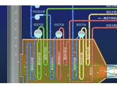余热锅炉由锅筒、活动烟罩、炉口段烟道、斜1段烟道、斜2段烟道、末1段烟道、末2段烟道、加料管(下料溜)槽、氧枪口、氮封装置及氮封塞、人孔、微差压取压装置、烟道的支座和吊架等组成。 余热锅炉共分为六个循环回路,每个循环回路由下降管和上升管组成,各段烟道给水从锅筒通过下降管引入到各个烟道的下集箱后进入各受热面,水通过受热面后产生蒸汽进入进口集箱,再由上升管引入锅筒。 各个烟道之间均用法兰连接。
