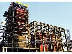 含尘烟气经由凝渣管、过热器、对流管束、钢管省煤器后排出炉外。锅炉凝渣管由前墙水冷壁拉稀而成。过热器为水平悬吊式结构,分为高温段和低温段,采用中间减温布置。对流管束为顺排布置。采用烟气两次折流板中间折流以提高烟气流速并形成横向冲刷,提高了对流管束的传热能力。省煤器采用锅炉蛇形管,横向从刷错排布置。水冷系统的中间部分为膜式水冷壁隔墙,既增加了受热面,又提高了密封和安全性能。前后墙水冷壁也采用膜式水冷壁。